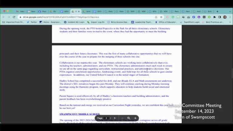 School Committee Meeting – 9/14/2023